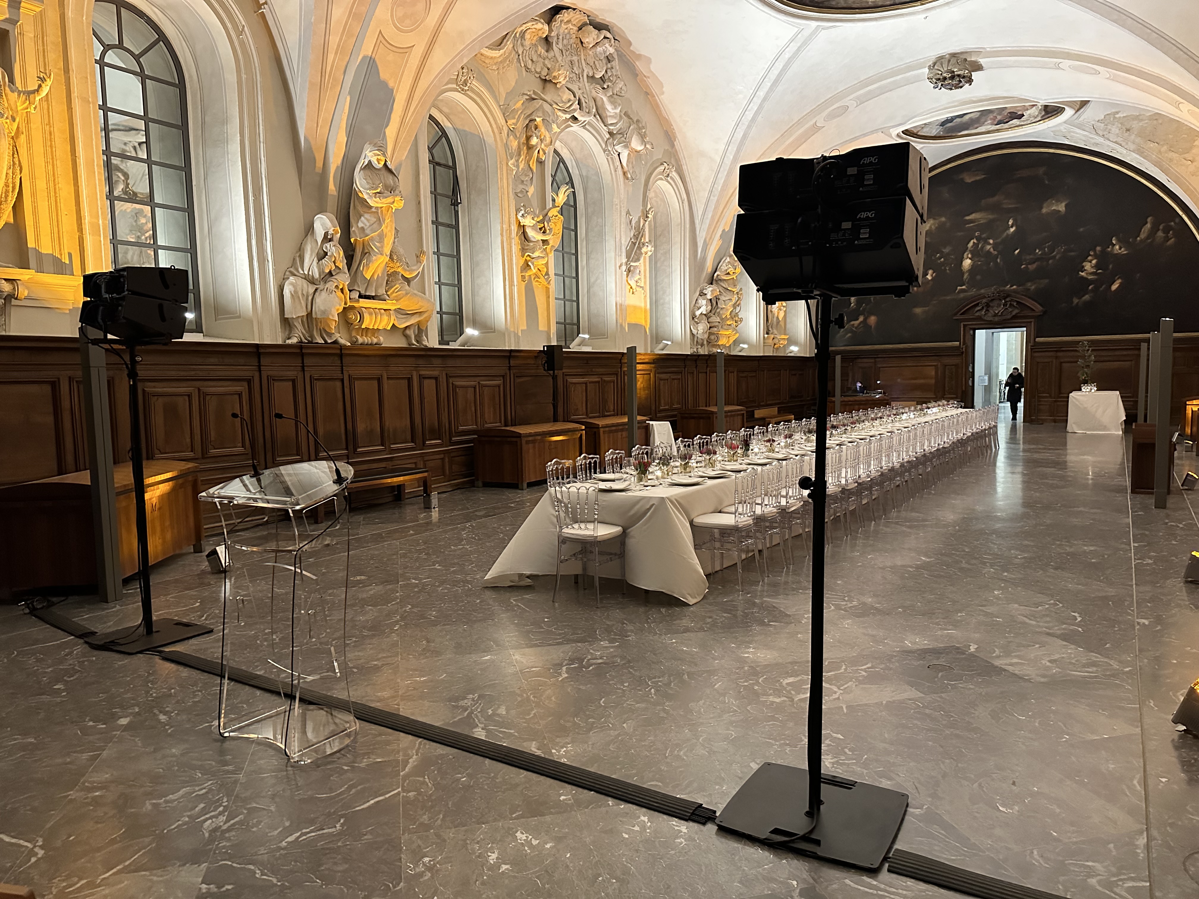Vous trouverez ci-dessous quelques exemples d’ambiances sonores réalisées lors de réceptions, soirées d’entreprise, mariages ou événements institutionnels. Chaque installation est étudiée pour offrir une qualité d’écoute optimale et une diffusion équilibrée, afin de valoriser chaque instant et garantir une expérience auditive unique.